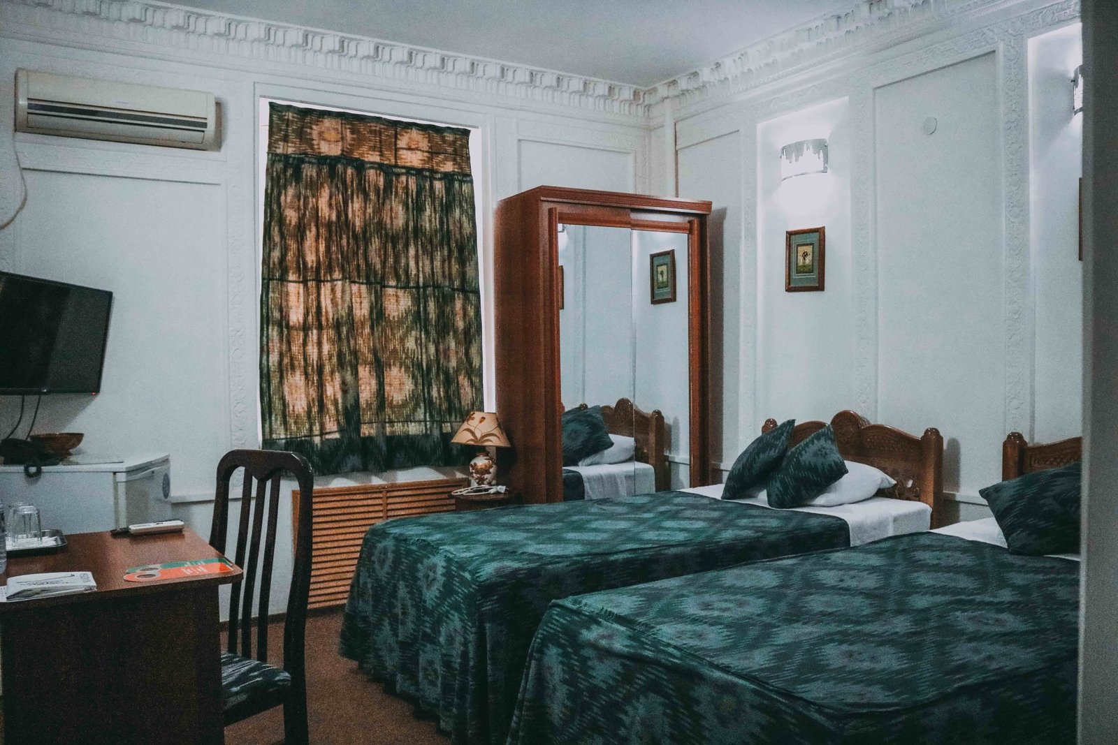Двухместные номера для размещения 1-го или 2-х человек. По желанию номера могут быть оборудованы одной большой двухместной кроватью или двумя раздельными односпальными кроватями. В оформлении комнат тонко сочетаются древние национальные традиции и модные тенденции современности. Стены украшает традиционная роспись с геометрическим и цветочным орнаментом. Белый цвет стен и потолка придают комнатам больше света и пространства. Площадь номеров 15-18 кв.м. Комнаты оснащены системой отопления и кондиционером; имеется телевизор, холодильник, стол, стул, прикроватная тумбочка, сейф. В каждом номере есть отдельная ванная комната с современной сантехникой и банными аксессуарами.